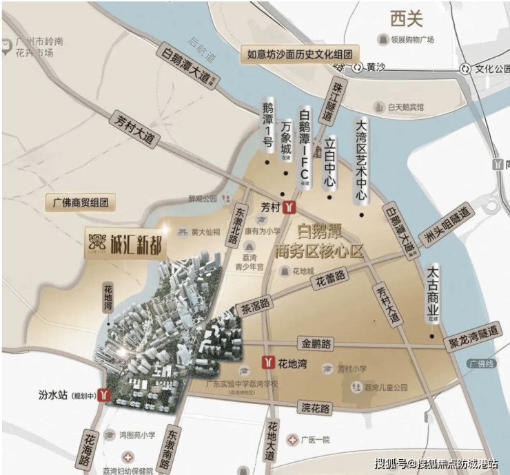 1. 交通配套:项目坐落于荔湾区茶滘路核心地段,依托“4横5纵”立体路网,15分钟直达海珠、越秀核心商圈(实测通勤数据:至珠江新城驾车22分钟,至北京路商圈18分钟)。规划中的地铁25号线汾水站距离项目约500米,预计2028年通车,通车后将实现30分钟直达广州全域。此外,项目周边有12条公交线路环绕,轻松通达各大商圈及交通枢纽。
