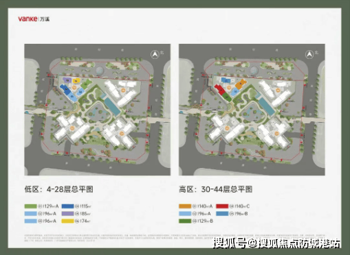 低区(4-28层):2梯6户,主力户型为74-129㎡;