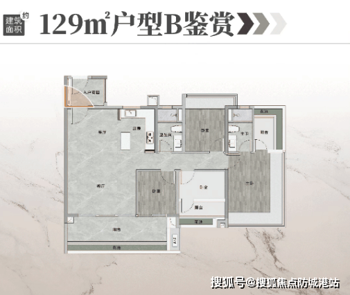 约129-140㎡高区四房:配置独立玄关储物、U型厨房、婴儿车专属收纳位,细节考量周到。