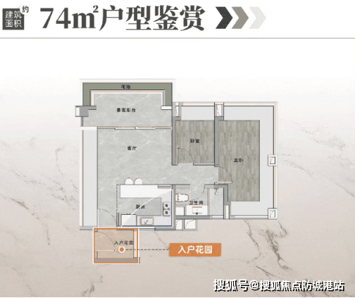 约85㎡三房:带入户花园,南向面宽大,赠送面积最多,实用性极强;