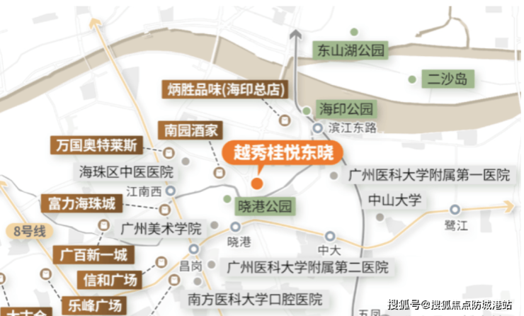 项目毗邻地铁8号线和2号线,多条公交线路环绕,距离晓港地铁站约600米,可快速直达客村、琶洲,以及北京路、珠城、天河北等核心商圈,换乘一次即可抵达目的地。交通网络完善,满足业主日常通勤和商业出行需求。自驾出行同样便利,东晓路上桥即可快速到达越秀东山,半小时内直达琶洲和珠城核心区域。