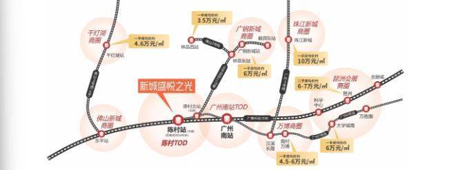 新城盛悦之光所在的陈村板块,是广佛融合的前沿阵地,与广州南站相距仅5公里。依托地缘优势,承接广佛两地的利好辐射,这里的房价节节攀升。目前,番禺万博的房价已达到4.5-6万/㎡,而陈村板块的价格约为2.8-3万/㎡,性价比极高。