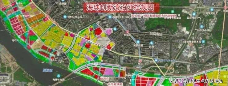 沿江住宅保利天悦是孤品,剩下的琶洲住宅供应多半靠外围赤沙红卫村等旧改,就不看江了。番禺和荔湾有江景,但是,毕竟是番禺和荔湾,要么东向,北向看江,和天河海珠不是一个能级。有戏可唱的,有且唯有一个南向看江的创新湾。来看一下中海映澜台,所在创新湾的控规图。