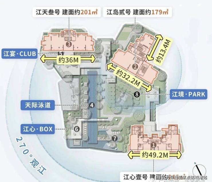 其三,270°观江面,130户,几乎可以做到户户一线望江。