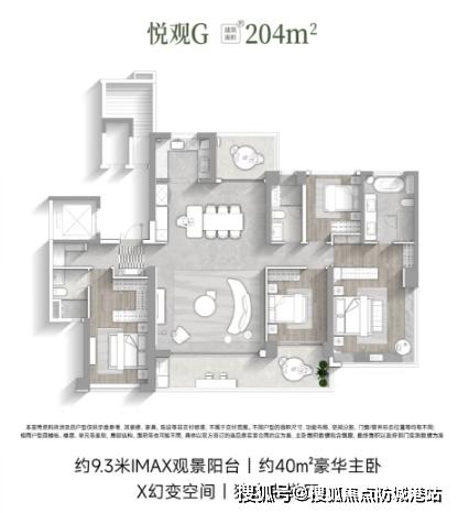 一期在售户型:约123㎡至204㎡的三至四房户型,部分户型配备有超大阳台和豪华主卧套房。