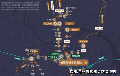 项目紧邻地铁3号线、7号线以及湾区高速地铁18号线,距离汉溪长隆站步行仅需约8分钟,出行极为便利。此外,周边还有多条主要道路如汉溪大道等,自驾出行也十分方便。广州南站直线距离不过6公里,极大提升了区域的通达性和便利性。