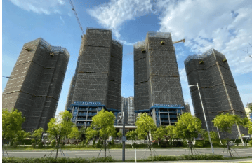 华丰金湾整体占地面积约 3.8 万㎡,计容建筑面积约 12.7 万㎡,体量不算庞大,但布局十分合理。项目由 5 栋 23 到 30 层的高层建筑、1 栋 23 层高的办公楼、1 栋 3 层高的公建配套、12 班幼儿园及商业体等组成,规划清晰,能为业主提供多样化的生活服务。建筑风格上,从已显露的住宅楼外立面来看,设计美观大气,尽显品质感。开发商华丰地产实力雄厚,2019 年,其旗下华丰世纪以底价 10.544 亿元竞得南沙区 2019NJY - 12 地块(即华丰金湾项目地块),折合楼面价约 1.1 万 / 平,为项目的建设和品质提供了有力保障。项目于 2023 年交房,目前售楼部基本雏形已建完,5 栋住宅也建设到了尾声,部分住宅楼已建设到 26F,小区大门也已建设完毕,初具成品模型模样。项目总户数 500 户,车位数 880 个,容积率 2.5,绿化率 35%,物业由华丰物业负责,物业费用 2.98 元 /m²,水电燃气均为民用,且全部精装修交付,产权年限 70 年,各项基础信息完备,居住舒适度有保障。