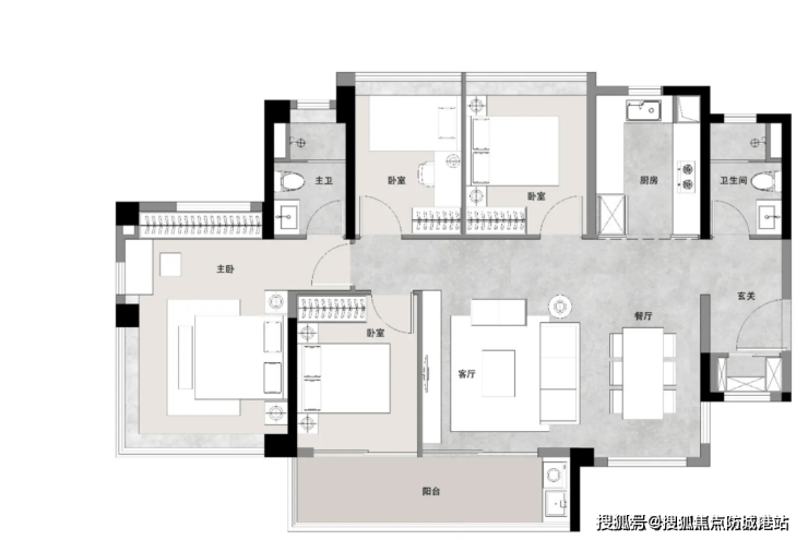 84㎡户型做到四开间朝南,使用率超90%