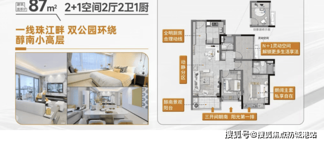约87㎡三房两厅两卫:创新性的“三开间朝南”或“双阳台”设计,实现了小面积功能全能化。部分户型通过半赠送或全赠送的灵动空间,可改造为独立的书房、茶室或儿童活动区。