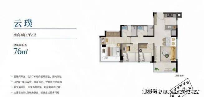 户型是居住舒适度的核心,而广开·云翰作为知识城首个“新规户型”楼盘,在空间设计上可谓下足了功夫。项目推出的建面约76-142㎡三至五房户型,凭借“全南向、大面宽、高拓展”的特点,赢得了购房者的一致好评。