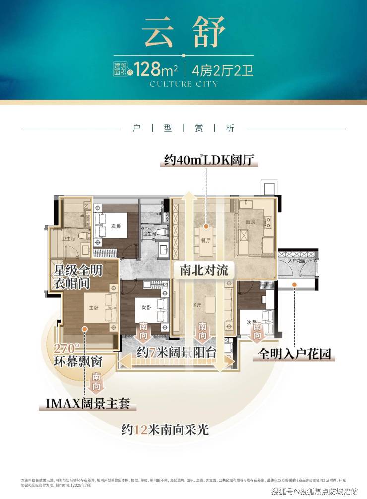 - **建面约128㎡四房两卫**:阔绰空间,动静分区,主卧套房设计,适配二胎家庭