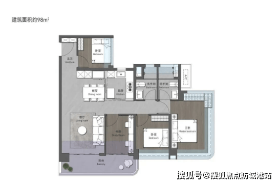 98㎡创意四房两卫:该户型主打实用性与灵动性,采用LDKB一体化设计,将客厅、餐厅、厨房、阳台无缝衔接,打造宽敞的公共活动空间,承载家人聚会、日常休闲等多元场景需求。户型布局紧凑合理,无浪费空间,通过灵动改造可实现四房功能,满足小家庭的居住需求,同时搭配观景窗户,让室内空间与湖居生态自然呼应,保障通风与采光。