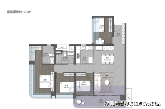 120㎡创意四房两卫:作为大宅之家的首选户型,该户型空间尺度优越,布局合理有序。客厅宽敞明亮,搭配观景阳台,可俯瞰社区园林或湖景景观;卧室空间充足,主卧配备独立卫生间与衣帽间,保障主人居住私密性与舒适度;灵动四房设计可根据家庭需求改造为书房、儿童房等,适配改善型家庭的多元生活场景。
