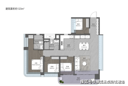 123㎡创意四房两卫:拥有约15.9m奢阔采光面,南北通透大开间设计,让阳光与鲜氧充斥室内每一个角落,打造通透舒适的居住体验。户型采用动静分区设计,公共活动区域与休息区域互不干扰,客厅搭配宽景阳台,延伸室内空间视野,四房布局满足家庭成长需求,细节处预留收纳空间,提升空间利用率。