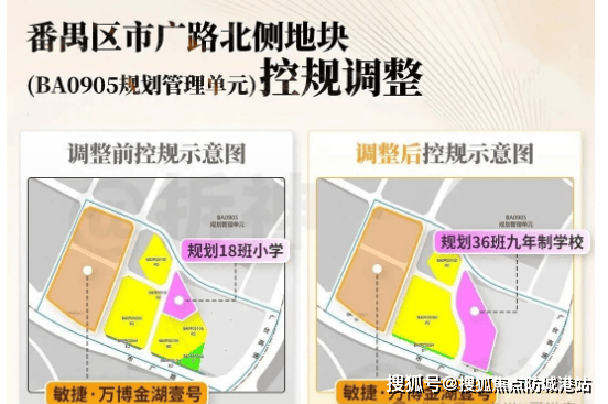 更值得关注的是,根据番禺区规自局公布的调规方案,市广路北侧地块已调规为36班九年制学校(市广路北侧地块控制性详细规划局部调整批前公示)。按照广州教育配套标准,36班九年制学校已属于片区主力学校,规模与教学实力均有保障,且参考番禺区现行教育政策,该学校很大概率为项目划分学区范围,为业主子女提供九年一贯制教育资源,实现“小升初”无缝衔接。