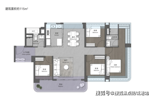 115㎡创意四房两卫:户型最大亮点为大面积入户花园,归家即享井然有序的从容,入户花园可改造为收纳区、换鞋区或绿植区,兼具实用性与观赏性。室内空间布局方正,南北通透,公共区域与私密区域分区明确,保障居住私密性,四房设计可满足二孩家庭或三代同堂的居住需求,每一处空间都经过精细考量,兼顾舒适度与实用性。