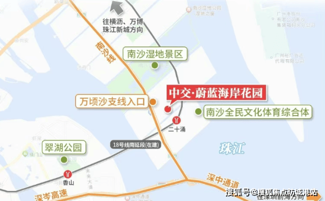交通方面,项目距离深中通道南沙线收费站约1公里,距离在建的18号线南延线(南中城际)二十涌站约500米,未来将成为大湾区交通枢纽,实现半小时内到达广州、深圳、中山、珠海等地。