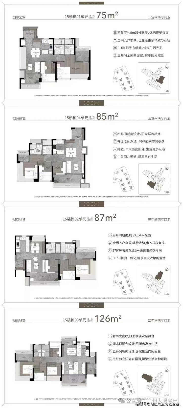 提供多种户型选择,包括76㎡和85㎡的小户型,满足不同家庭的需求。