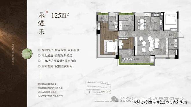 整体规划上,项目采用板塔结合布局,包含2T4塔楼、2T2及3T2板式产品。楼栋之间留出充足楼间距,形成通透开阔的视觉体验。尤其是一字排布的板式楼栋,将采光与通风条件优化至更高标准,户户朝南的朝向设计,使自然光线成为空间构成的一部分。入户礼序遵循中轴对称的东方规制,通过轴线延展形成层层递进的归家仪式,从社区大门、礼仪广场到园林主景,再到单元门厅,营造庄重而不失温度的居住氛围。