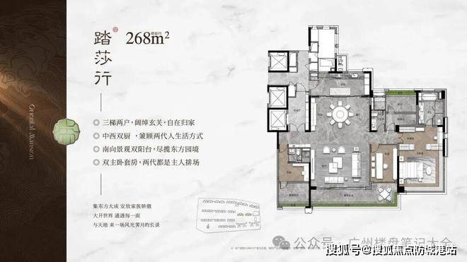 目前主力户型涵盖建面约107—268平方米,覆盖三房至大平层产品,均为南向设计,可满足不同家庭结构的改善需求。