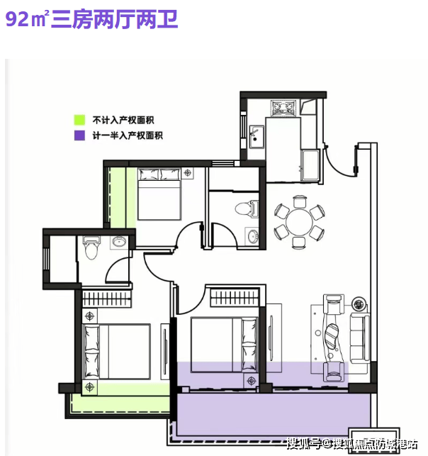 目前,星河·畔月湾一期主要在售户型为建面约79-126㎡的精妆三至四房,满足不同家庭的需求。而二期新玥推出的样板间户型则涵盖了建面约92-115㎡精装3-4房,相比一期,实现了空间全面进阶。实际得房率显著跃升,以双开间拉宽阳台尺度,更多面积赠送,带来更宽奢的居住体验。