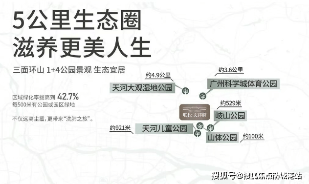 项目外部坐拥“1+4公园”生态配套,涵盖山体公园、天河区儿童公园、岐山公园、天河大观湿地公园、广州科学城体育公园,加上内部园林景观,区域绿化率高达42.7%,每500米即可抵达公园或绿地,生态宜居属性突出。商业配套方面,周边聚集太古汇、美林M·LIVE天地、优托邦购物中心、天河城百货等商圈,自驾可快速抵达,满足购物、餐饮、娱乐等多元化消费需求。