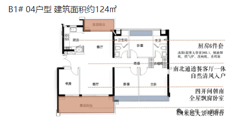 建筑面积约124㎡户型:同样采用两梯四户设计,空间更加宽敞,适合追求更高生活品质的家庭。