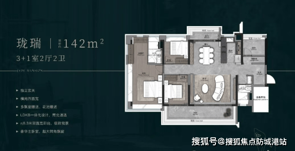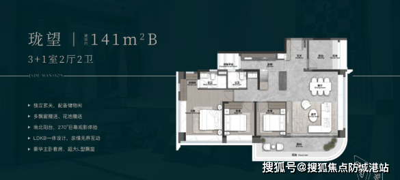 而建面约131㎡的户型,则刷新了琶洲小面积段的天花板。入户设计了极具仪式感的拐角玄关,南北对流双阳台,南向阳台长度更是达到了惊人的7.5米!搭配LDKG一体化设计,彻底突破了空间局限。主卧配备L型衣帽间与环幕大飘窗,让您躺在床上便能欣赏窗外的“巨幕4K景观大片”。正如一代文豪福斯特所言:“窗外的风景,决定了房子的价值。”珑璟台用实打实的空间尺度,证明了奢居不仅是内部的舒适,更是对外部稀缺资源的极致占有。