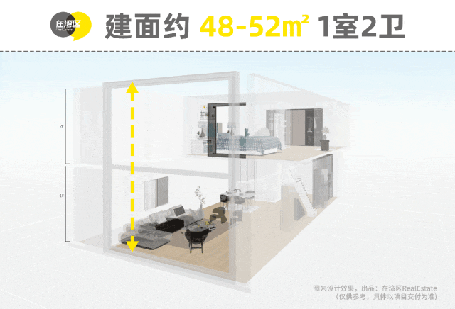 建面约48-52㎡百变Loft,自住、工作、生活三不误