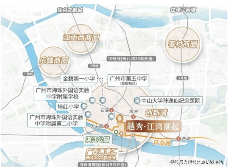 江湾潮起最大亮点在于其稀缺性与突破性并存的产品定位。首先,它是后航道首个纯南向、无遮挡亲江住宅,具备强烈的标杆属性。其次,江景界面长达2400米,在广州高端住宅中极为罕见,真正实现“推窗见江”的居住体验。同时,借力海珠未来产业和规划优势,搭配大型商业体落地,以及即将开通的地铁10号线,整体潜力不容小觑。此外,越秀作为开发商,其在广州市场的品牌认可度高,产品把控能力强,也为项目增添一份信心保障。