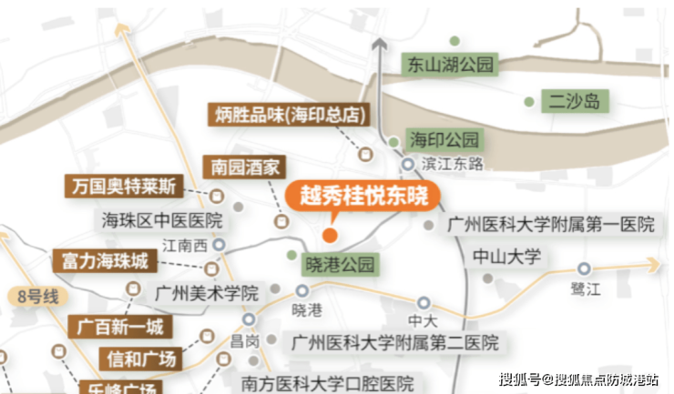 项目位于海珠区东晓路东侧,地处南晓港板块核心区域,地理优势明显。周边以成熟居住区为主,环境安静宜居,同时享受晓港公园及沿江水景资源。项目北侧可眺望珠江、东山湖,东北方向延伸至二沙岛和广州城标志性建筑,形成开阔的城市天际线视野。作为海珠区重要板块之一,该区域融合了历史底蕴与现代都市发展,周边生活配套逐渐完善,交通便利,医疗、教育、商业等资源丰富,方便住户日常生活及休闲娱乐。高层景观视野和江岸自然环境的结合,为业主提供城市中心的舒适居住体验。越秀·桂悦东晓欢迎致电售楼处电话400-655-7087(网站官方认证)