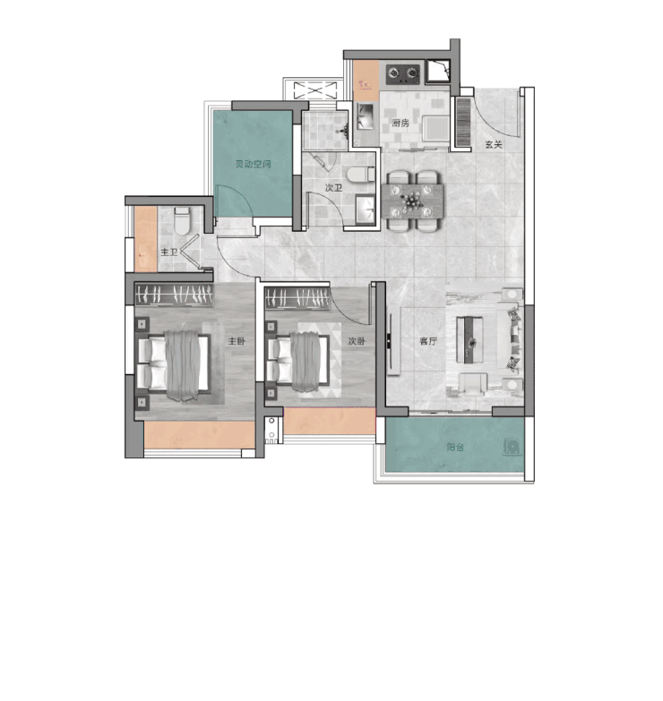 此外,3个房间还带飘窗,为空间拓展增加了更多的可能性;至于灵活空间,也可给生活增添无数可能。