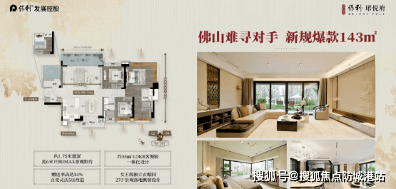 作为北滘新城目前唯一在售的新规住宅,保利珺悦府主力户型为121㎡与143㎡,均实现接近100%的使用率,在同面积段中多出近一房空间,极大提升居住实用性与未来成长性。121㎡户型采用LDKB一体化设计,打造约55㎡通透公区,搭配6米阔景阳台,可灵活改造为健身区、咖啡角或亲子互动空间;四开间朝南,主卧配备3.6米开间、270°转角飘窗及步入式衣帽间,采光与视野俱佳。143㎡户型更进一步,LDK厅达60㎡,轻松变身家庭影院或儿童乐园;主卧三窗设计+独立衣帽间,通透感堪比高端酒店套房。虽未详述建材品牌,但依托保利高端改善系标准,整体空间布局与功能细节已充分彰显对现代家庭生活的深度理解。