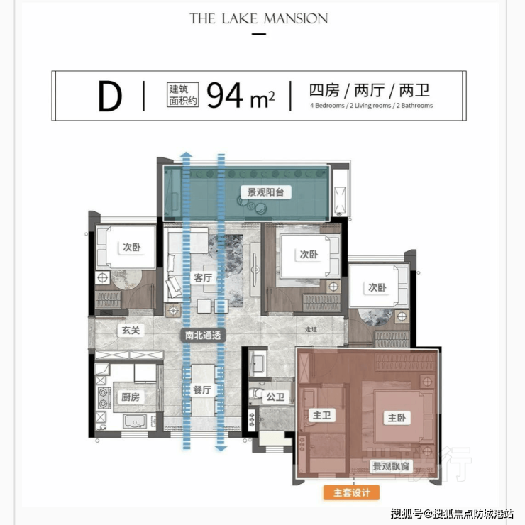 此户型是改善家庭的热门之选。四房格局中包含一个多功能房,可作儿童房、书房或老人房使用。双卫设计有效提升生活私密性与便利性;主卧套房配置独立卫浴与衣帽区,尺度感十足。餐客厅一体化设计,搭配6.5米大面宽阳台,视野开阔,采光极佳。参考总价约310万起。