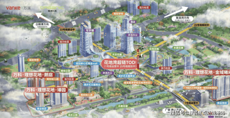 除了便捷的交通,项目还规划了丰富的商业和生活配套。3座潮奢商业坐标,全国首座双太古[在建中]、26.9万㎡华润万象城[在建中]、理想花地18万㎡城市级购物中心[规划中],世界级商圈未来触手可及。同时,还规划了约30万㎡地标级总部办公、约50万㎡科创产业集群、约17.6万㎡立体公共空间等,打造了一个集“产、商、住”一体的新城市中心,成为湾区TOD超高端综合体的典范。