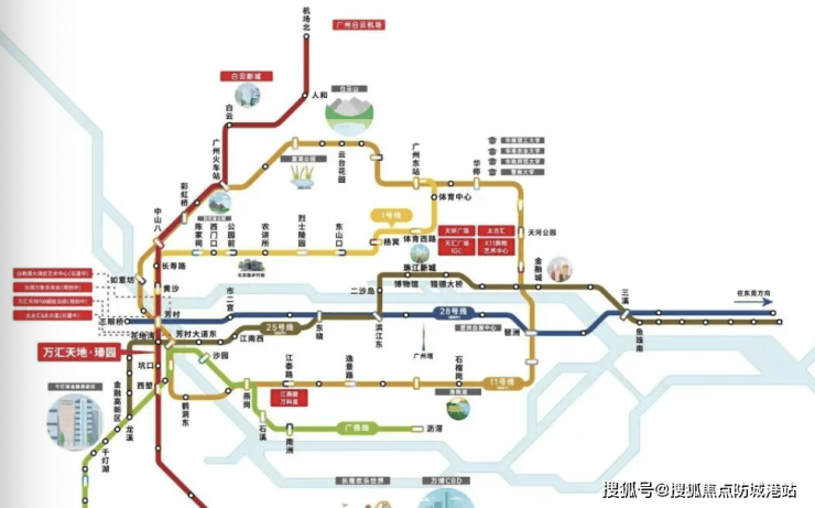 项目附近的花地湾TOD枢纽是地铁1号线、25号线花地湾站的交汇换乘点,距离地铁花地湾站约800米左右,步行需12分钟。1个站即可到达芳村TOD,可换乘11、22号线地铁。其中,11号线是打通广州地铁线网的“换乘之王”,全线32个站点中,有26个为换乘站,16个与既有线路换乘。这意味着从项目出发,能够快速便捷地到达广州各区,大大缩短了通勤时间,提高了生活效率。