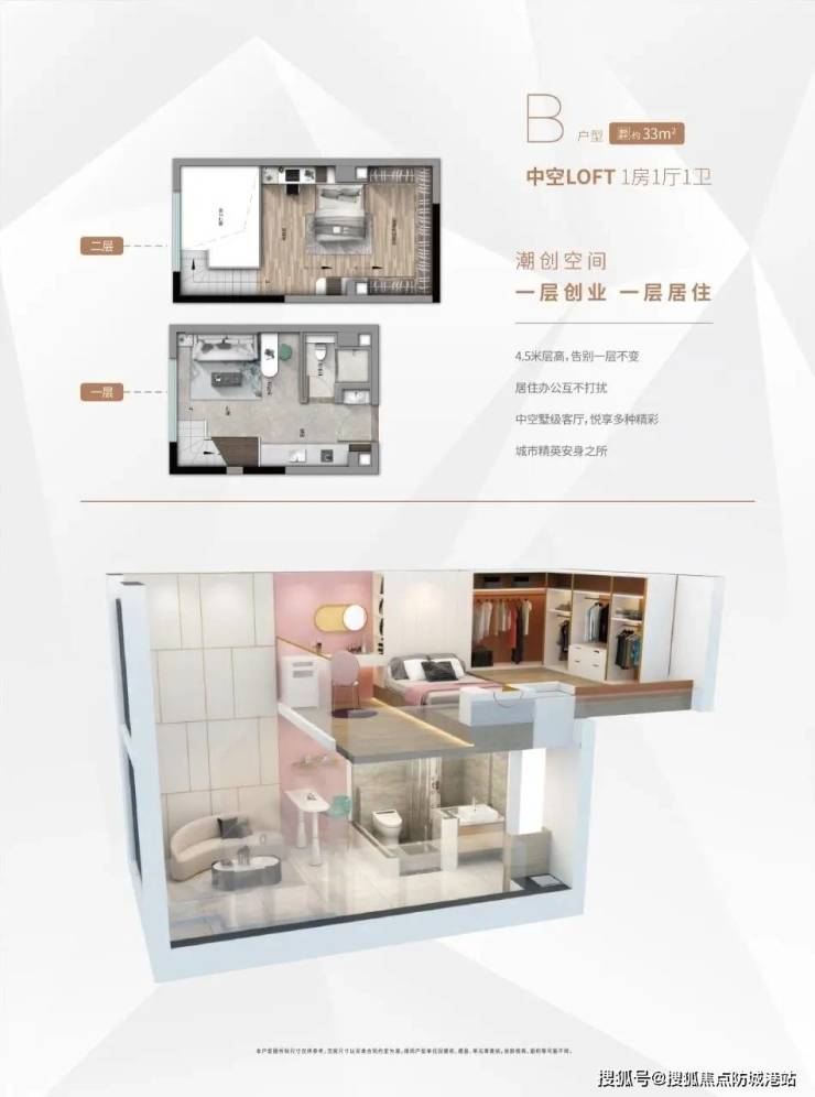 (一)B户型:建面约33㎡ LOFT一房一厅,年轻白领/创业人士首选