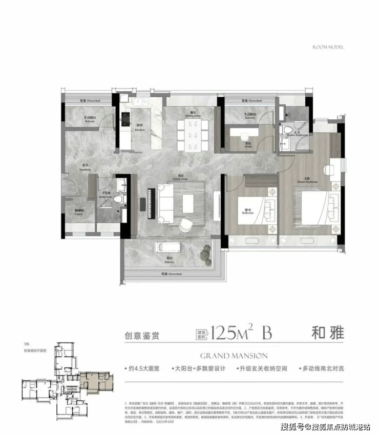越秀天河和樾府主推约108-140㎡三至四房改善户型,户型设计遵循“全明通透、空间利用率高、人性化细节到位”的原则,适配不同阶段改善家庭需求。以主力户型140㎡南向IMAX宽幕央座为例,该户型拥有4.5面南向面宽,南北对流,采光通风极佳;客厅连接近9米宽景观阳台,进深约2.4米,拓展生活空间的同时,最大化欣赏园林景观;主卧采用“小家化设计”,配备独立卫浴、衣帽间及临窗浴缸,南北双飘窗设计,可俯瞰园林风景,满足业主品质生活需求。