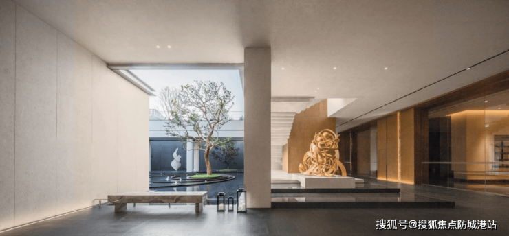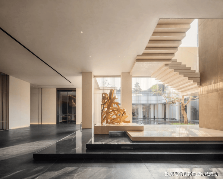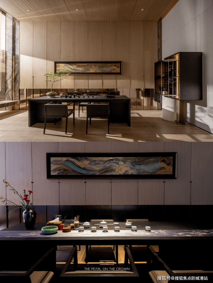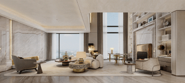 接待区融合了建筑设计、室内设计与景观设计的理念,通过流畅的空间过渡,将室内外环境自然衔接,打造独一无二的尊贵体验。整体以低饱和度的米色为主调,材料的选择注重质感的和谐统一,在典雅与奢华之间达成平衡,同时融入静谧安宁的气息,奠定了整个空间的独特风格。