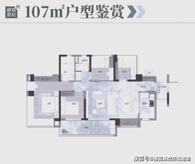 107㎡的四房两卫户型,空间更加宽敞,适合成长型家庭。主卧带独立卫浴和衣帽间,居住体验感极佳;多出来的房间可以当书房、儿童房,或者留给老人居住,满足家庭人口增长的需求。户型布局合理,南北通透,每一个房间都有充足的采光,让家人都能拥有舒适的居住空间。