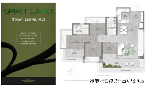 建面约100㎡四房两厅两卫:海珠区内唯一一款100方内的正四房户型,配备7.2m长的大平层级阳台,独立主卧套间,270°转角飘窗设计。