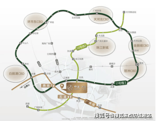 双地铁站:中建天钰位于广佛线的燕岗站和石溪站之间,步行距离分别为750米和900米。此外,燕岗站还是大环线11号线的站点,可以方便快捷地前往海珠、琶洲、天河及越秀等核心区域。石溪站则是广佛线和10号线的换乘站,可直达珠江新城等重要商业区。