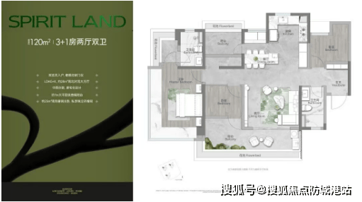 建面约120㎡四房两厅两卫:南北通透设计,客厅面积达28㎡,配备7m长的大阳台,主卧带有独立衣帽间。