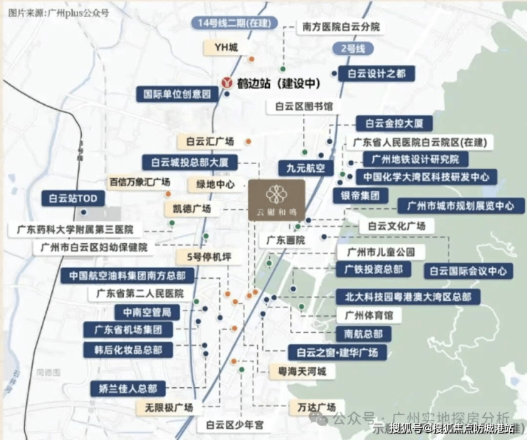 轨道交通: 项目距离地铁2号线白云公园站直线距离约600米,实测步行约8分钟,是区域内少有的“已运营”地铁上盖物业。2号线作为广州南北向大动脉,串联起白云机场、广州火车站、珠江新城、广州南站四大枢纽,日均客流量超120万人次,通勤效率远超“规划中”线路。对比竞品:同区域部分项目宣称“地铁上盖”,实则距离地铁站超1.5公里,需依赖共享单车或公交接驳;而云樾和鸣的“8分钟步行圈”,让通勤从“将就”变为“享受”。