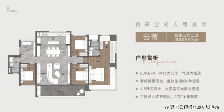 建面约143㎡四房两厅两卫:高端户型,满足对空间和品质有更高要求的家庭。
