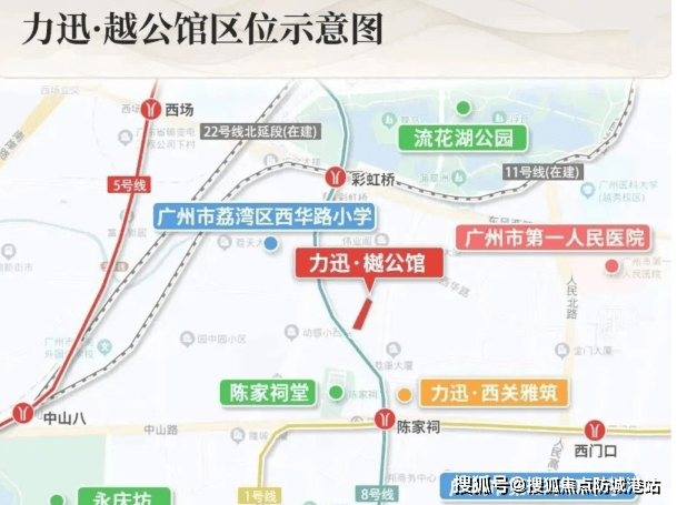 力迅樾公馆位于老荔湾腹地,距离越秀区仅一公里,步行约6分钟即可抵达陈家祠站(1/8号线)或彩虹桥站(8/11/13/22号线)。其中,彩虹桥站作为广州地铁的重要枢纽,汇聚四线交汇,未来还将接入13号线二期,直达珠江新城,实现“一次换乘通达全城”的高效出行体验。