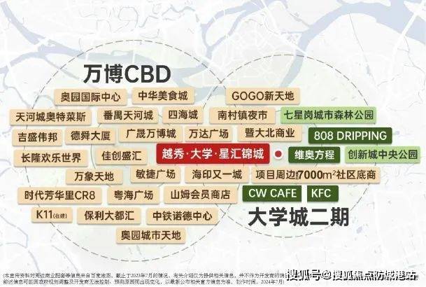项目自带6000平米底商,已签约肯德基、CW Cafe、808 dripping等商家,能满足业主日常基本消费需求。若需大型商业设施,则可前往南村万博商圈,这里有万达广场、天河城、四海城、山姆会员店等大型商业综合体。