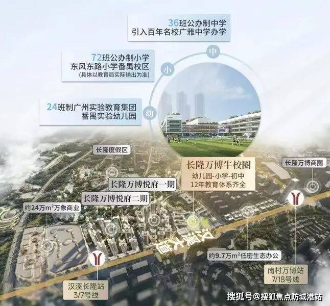 教育方面:我们斥巨资配建了从幼儿园到初中的12年全龄名校链,引入广东省番禺实验幼儿园、东风东小学、广东广雅中学。这不仅解决了“上学远”的问题,更通过“目送式”教育,让孩子每天多睡半小时,让家长少一份奔波。