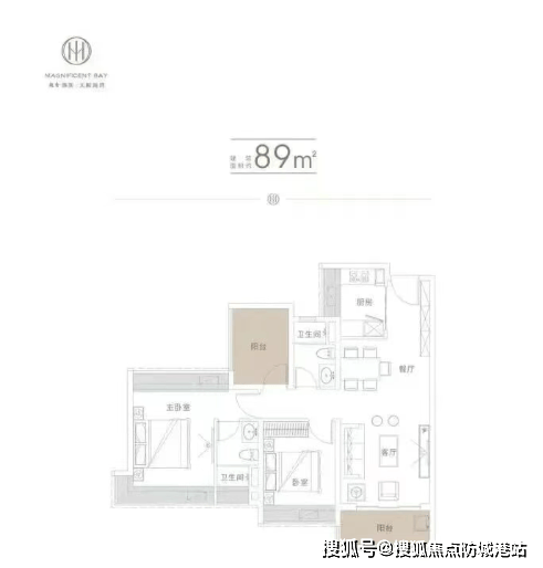 89㎡三房两卫:三开间朝南,LDK一体化,得房率超85%;