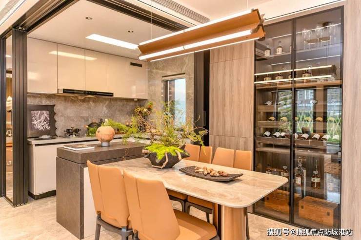 而厨房空间,得益于一体化的格局设计,你可以根据自己的生活习惯,打造开放式的中西厨双厨房设计,搭配中岛台,既可以满足中式烹饪的爆炒需求,也可以实现西式烘焙、简餐制作的需求,同时开放式的设计,让在厨房做饭的家人,也能和客厅里的家人随时互动交流,不会因为关在厨房而和家庭生活脱节,做饭不再是一个人的忙碌,而是一家人的温馨互动。